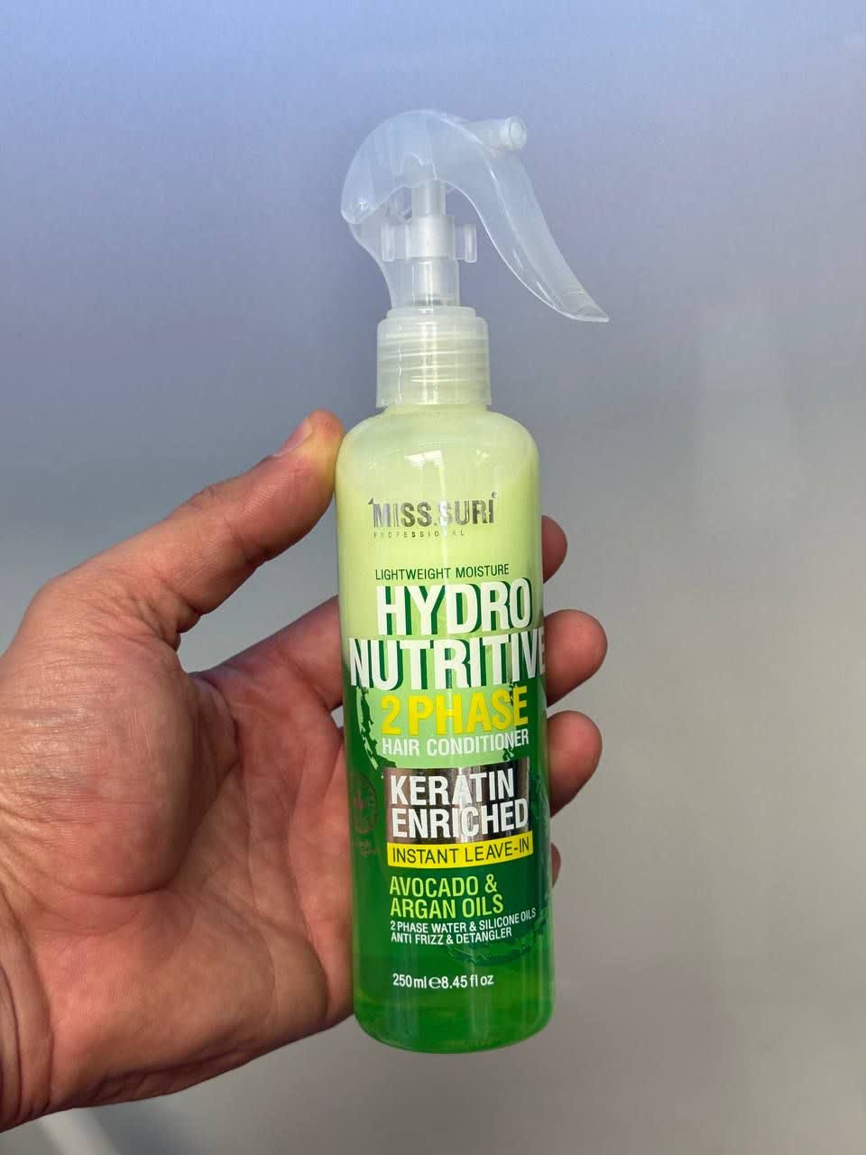 این اسپری حاوی مواد مغذی و محافظتی است که از آسیبهای ناشی از گرما و محیط جلوگیری میکند. اسپری دو فاز مو ابرسان میسوری (missuri) سایز 250ml به دلیل فرمول بدون الکل، برای پوستهای حساس نیز مناسب است و باعث نمیشود موهای شما سنگین یا چرب به نظر برسند.